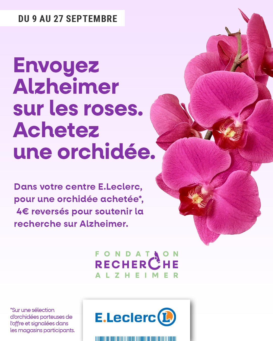 Dans le cadre de son partenariat avec la Fondation Recherche Alzheimer, le Mouvement E.Leclerc reconduit pour la treizième année consécutive l’opération “Une Orchidée pour la Mémoire”.
